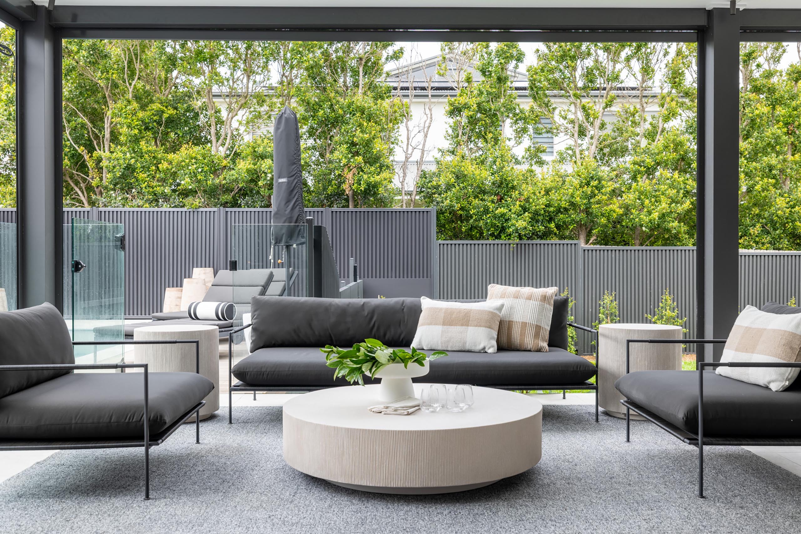 Finally, the outdoor entertaining space celebrates the best of the Australian lifestyle. Using our Malmo Outdoor range, built for outdoor environments with its powder-coated stainless-steel frame, the space is as chic as it is durable. Our design team finished the space with our Tura Round Coffee Table, creating an inviting and cohesive outdoor setting