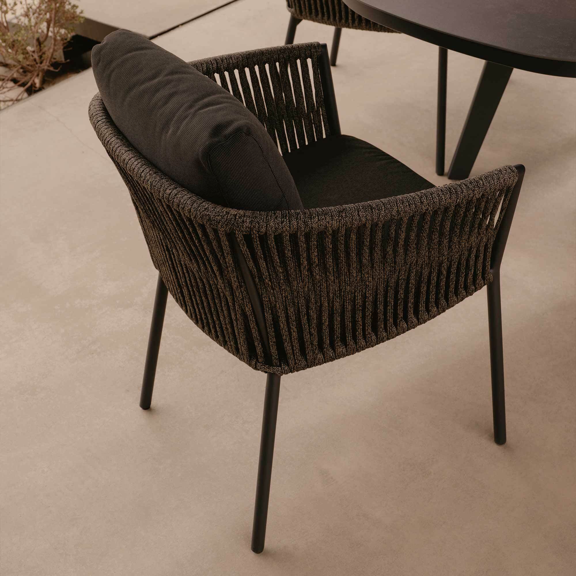 With guests designed to sit around the dining table for extended periods of time dining chairs should be a mix of aesthetic and comfortable. Chic and durable meet the Catalina Outdoor Dining Chair. This charming dining armchair features a dual persona crafted from rope set atop a four-legged aluminium base with a durable powder coat finish.