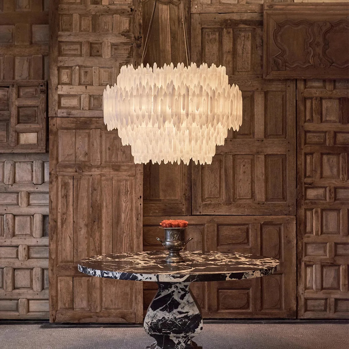 Pieces like the delicate Selenite Layered Pendant or classic Patras Alabaster Pendant demonstrate this balance beautifully. Suspended at the right height, they draw the eye gently downward, creating a sense of focus without dominance. Paired with surrounding lamps, they contribute depth and atmosphere. This is lighting that understands restraint, and the power of getting the details right.