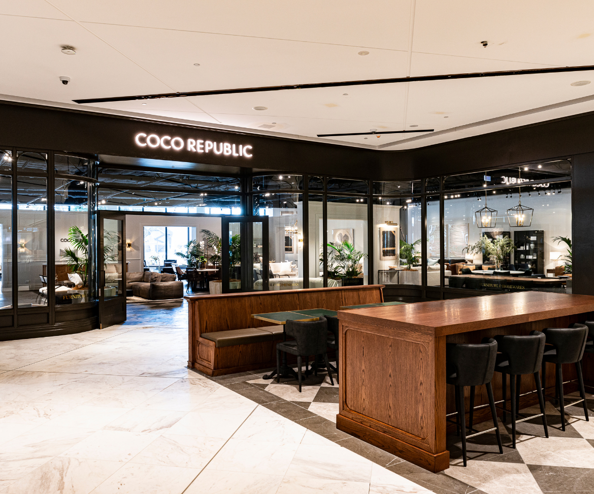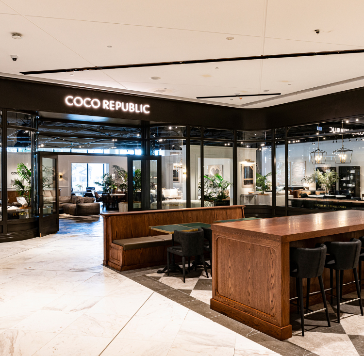 Located in the upscale Westfield Newmarket in Auckland, discover Coco's Republic first showroom in New Zealand. This 1,062 sqm showroom is home to an award-winning interior design studio and features a dedicated design lab in store. Adjoining Coco Republic's showroom is L'Americano, an Italian-inspired breakfast and lunch destination.